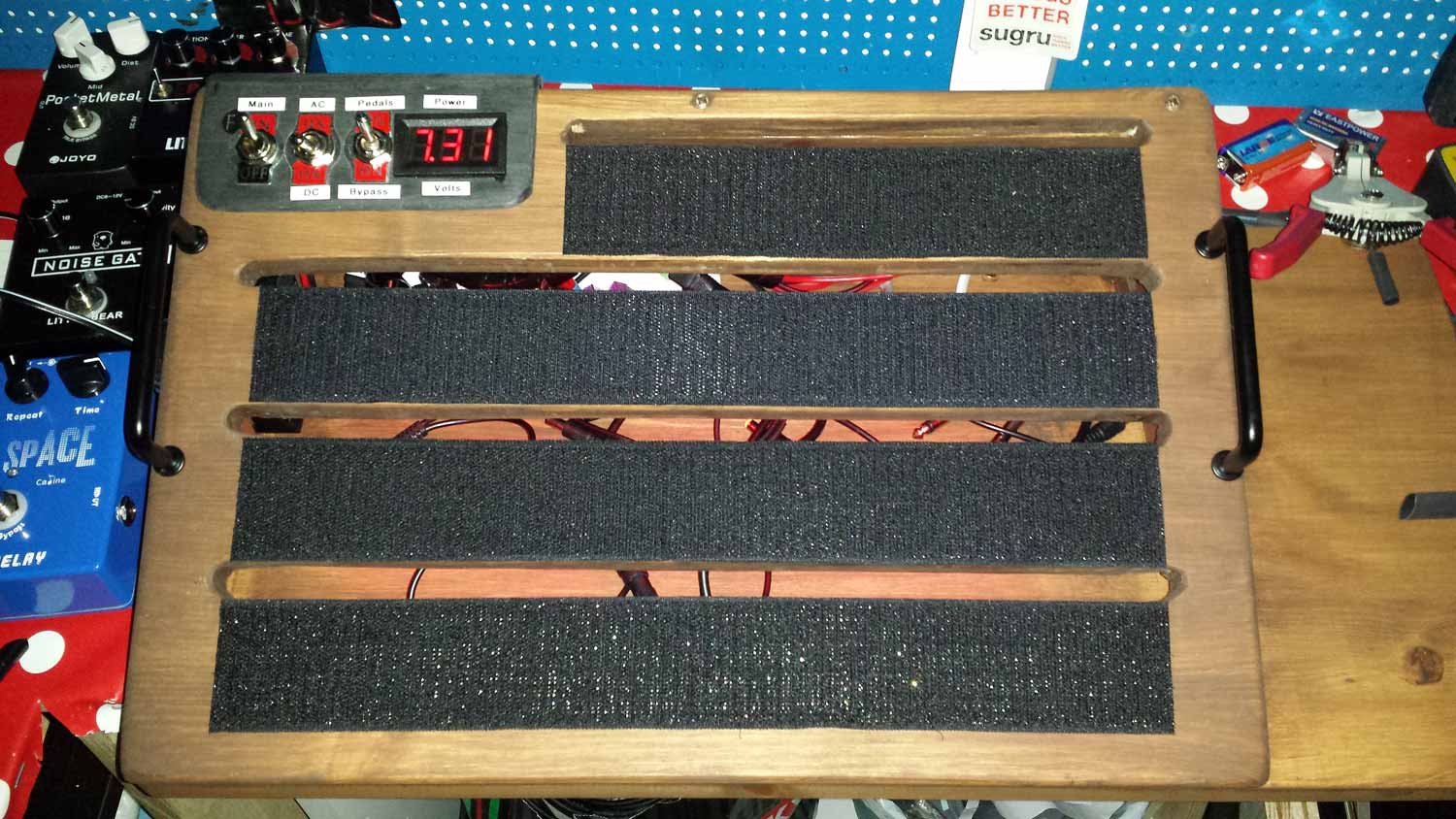 Holding the nut with pliers might help while tightening the bolt. - You should now have something that resembles an angry pig: