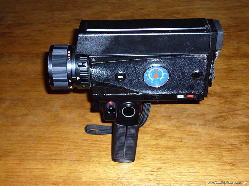 The first one was an Elmo Super 306 from 1976. Fantastic optics! This one still has film in it, although I’m not sure how to get it out. I didn’t have any fresh batteries, and when I inserted some with about 30% left, a red E was shown in the viewfinder. Cost including carrying case: 20SEK.