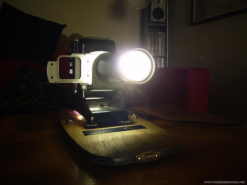 When I was basically done in the store, I found on the top shelf a dirty case that looked “antique and German”. And I was right. Having some problems getting it down, I fell in love as soon as I managed to get the case open. Inside was an old Leitz diapositive projector.