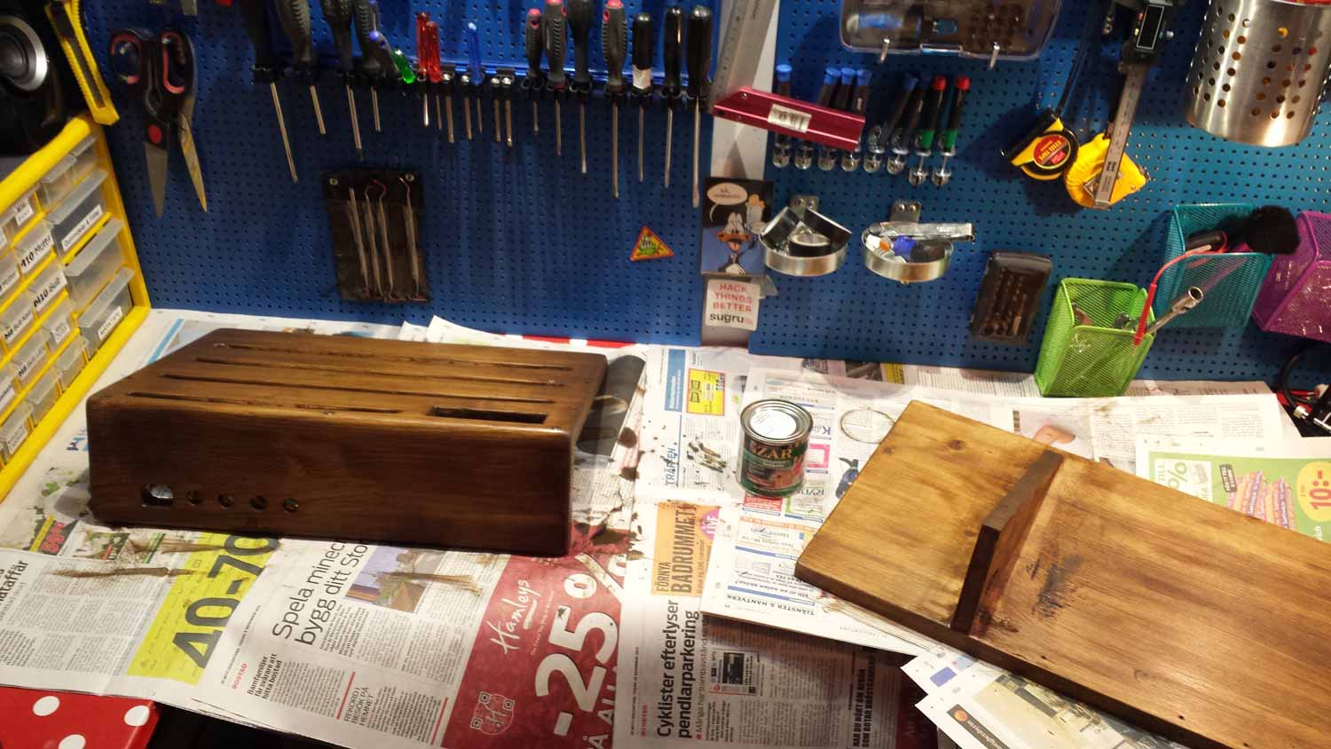 Today I did some last revisions to fit the video card that was slightly to high when fitting it, and finished off with staining all the cuts and holes (“Dark Oak” dye), and also applying it to the surrounding chest panels for it to blend in better.