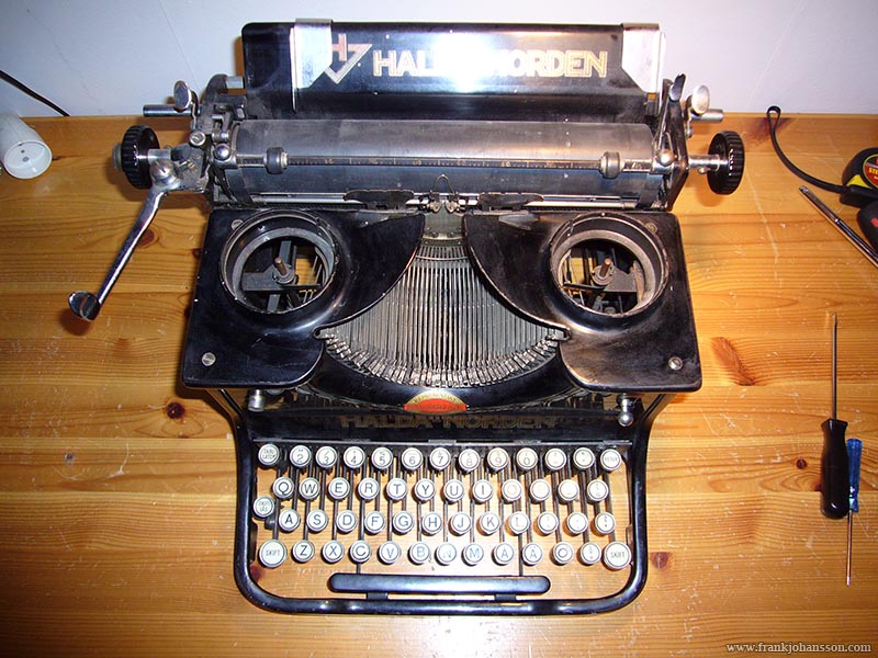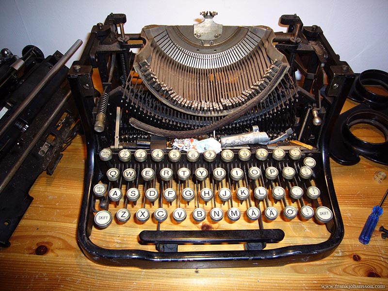 And that’s when the frame broke. Both front and back, so it was now completely in two pieces. As it is made out of cast iron, the chances of getting it repaired and still look would cost many times more than I paid for the actual typewriter (which was 80 SEK).